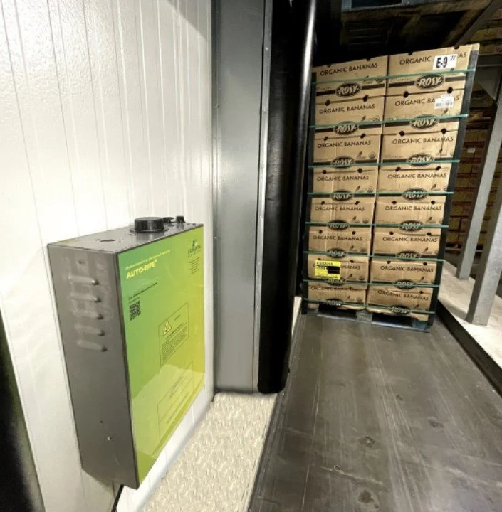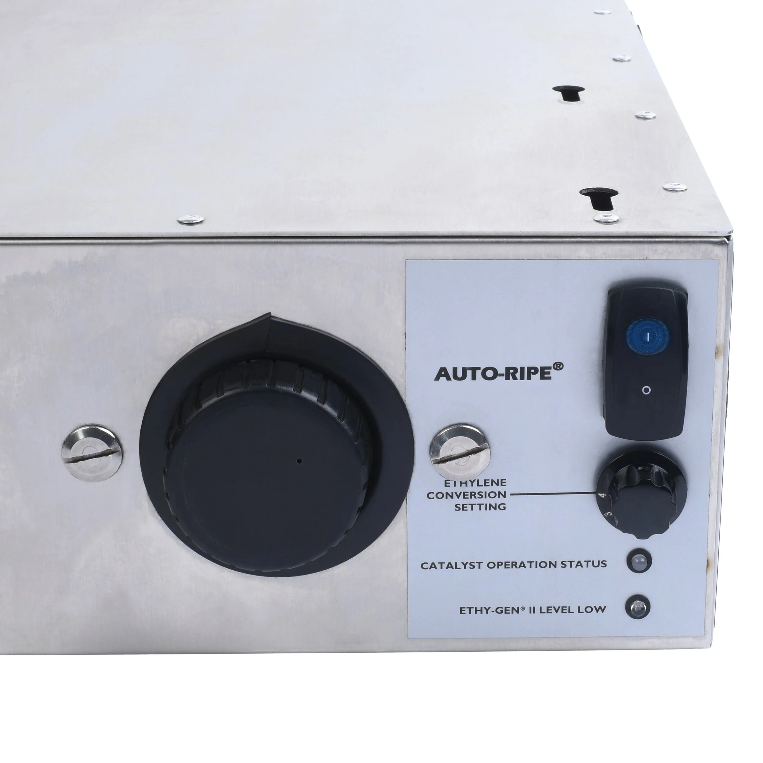 The redesigned Auto-Ripe® Generator was developed in 2021 after a recognized need for a thinner, wall-mounted, vertical storage of Ethy-Gen® II Ripening Concentrate. A better fit in tightly packed ripening rooms, the Auto-Ripe® holds up to 4 liters and alerts to a low Ethy-Gen® II level.